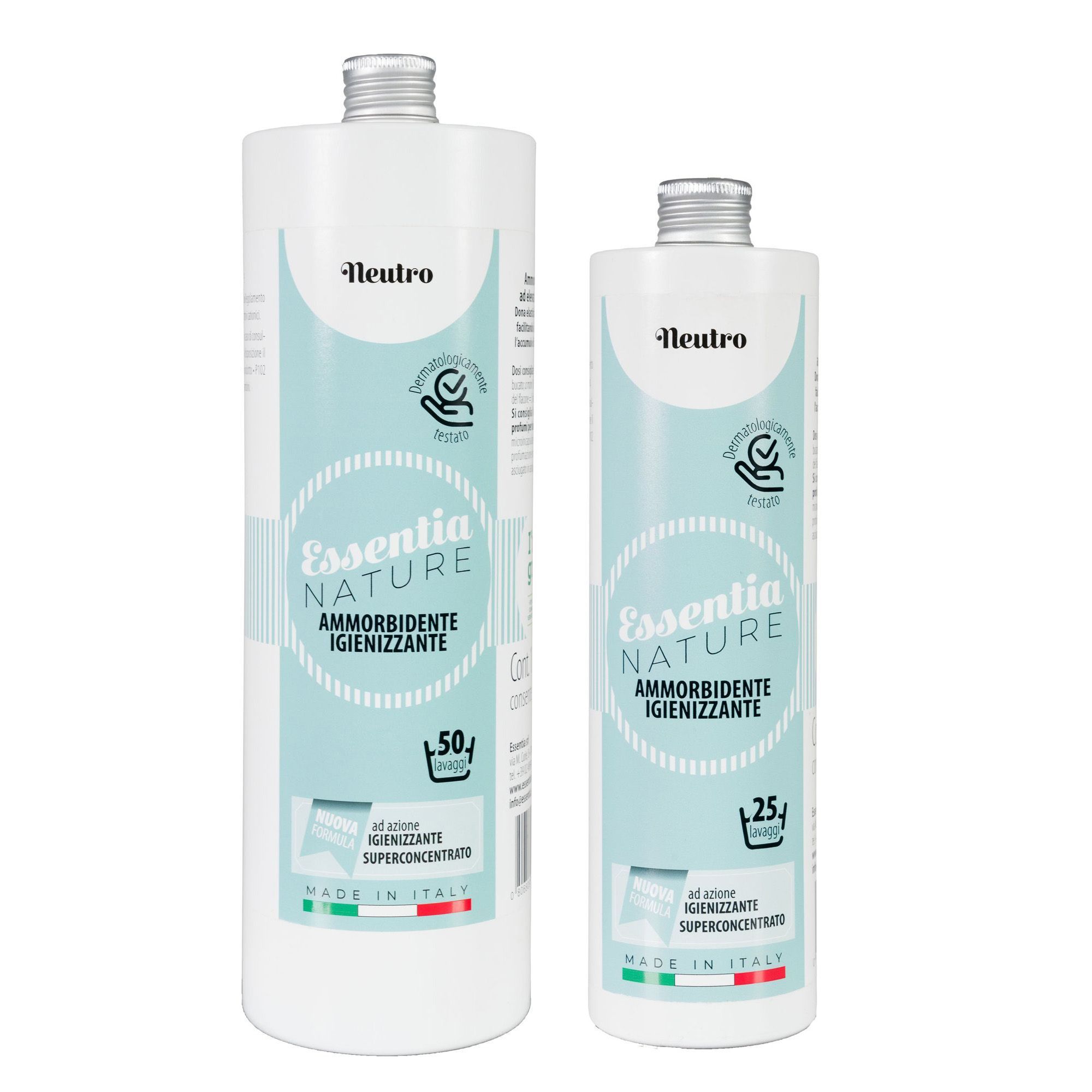 Ammorbidente Neutro Essentia dona elasticità e morbidezza ai vostri indumenti, con tutti i tipi di tessuti. L’uso del prodotto facilita la stiratura ed evita l’accumulo di cariche elettrostatiche. Ha anche un’ AZIONE IGIENIZZANTE con Sali Quaternari, per un lavaggio sicuro ed un bucato igienizzato.